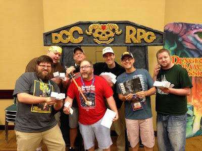 Meanwhile, over at the DCCRPG room, I didn't have any players! Turns out that my entire table advanced in the tournament, so I had to go recruit some folks with generic tickets.